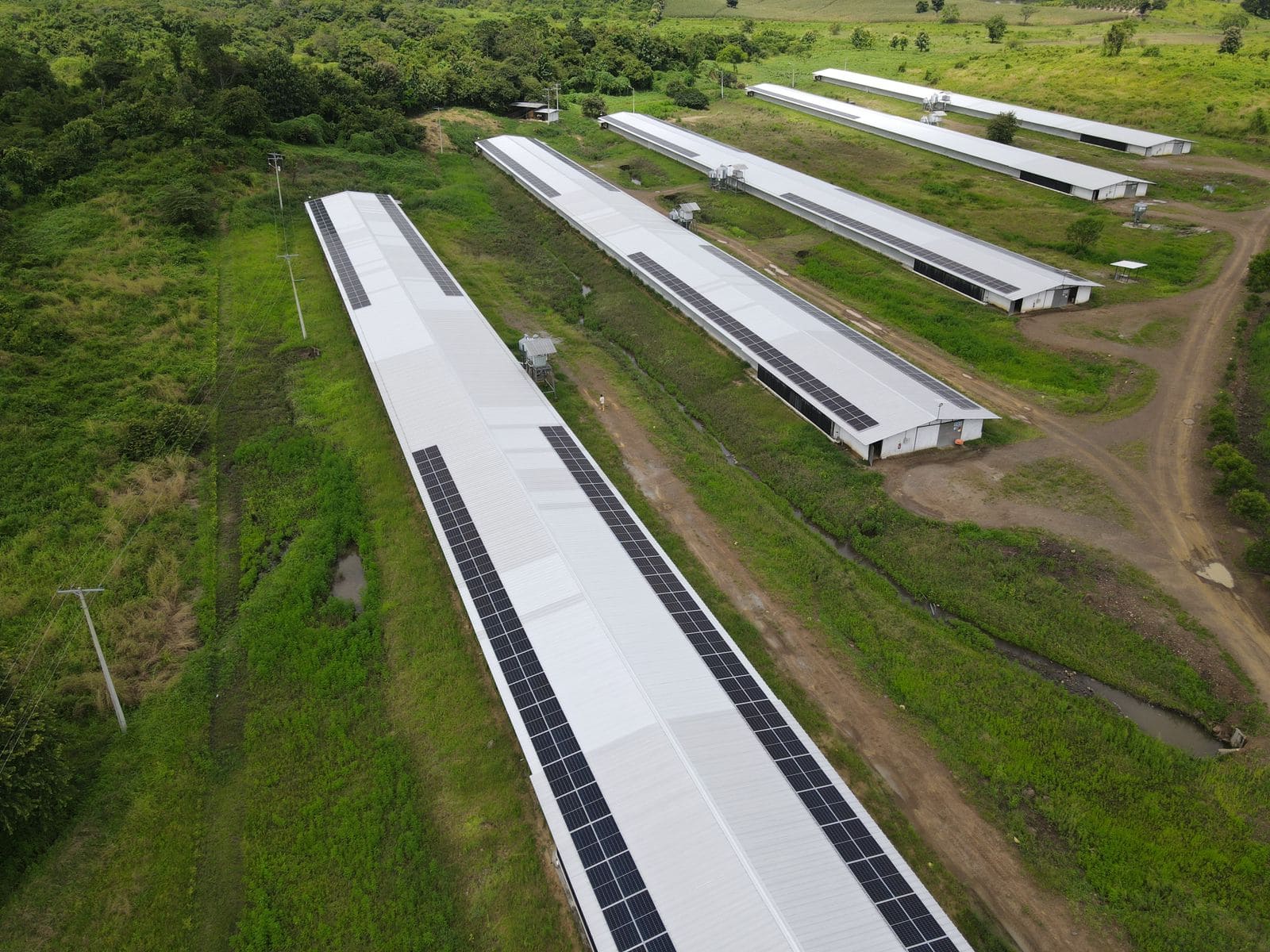 Es una planta solar sobre cubiertas en galpones, para abastecer de energía a la Avícola, manteniendo sus productos de calidad.
